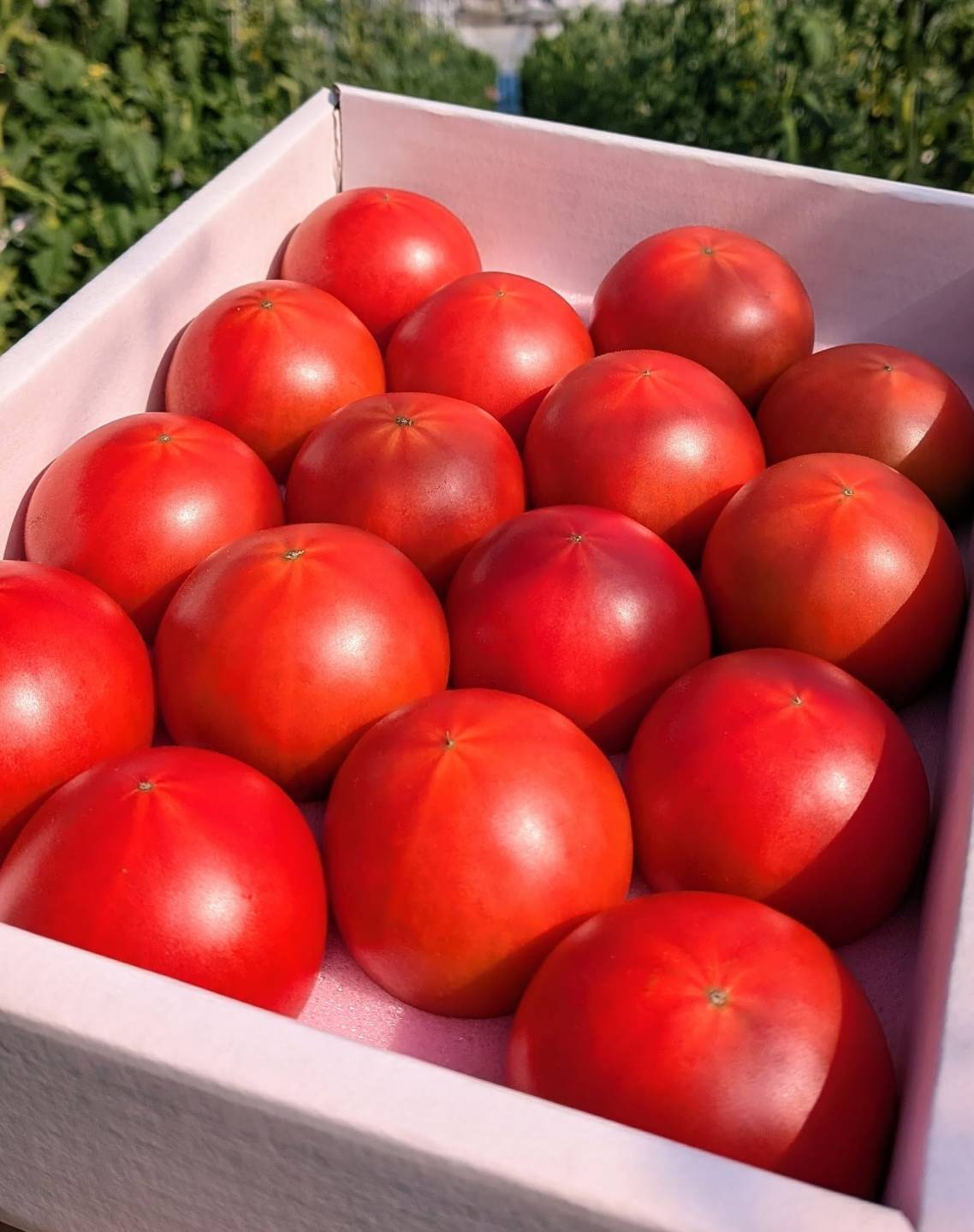 日高みよし農園のトマトはただ甘いだけでなく、むぎゅっと、ずっしり、食卓に上がった時に存在感を放つ、そんなトマトです!!